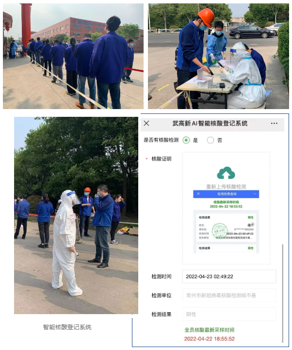 根據(jù)上級文件精神指示,配合開展全體員工及鄰廠單位全員核酸檢測,為安全生產(chǎn)筑牢“防護(hù)墻”。同時(shí)要求員工在武高新AI智能核酸系統(tǒng)中及時(shí)上傳最新核酸證明。